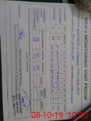 | Monitoring Date: 08-10-2019 | Start Time: 08-10-2019 08:38 AM | End Time: 08-10-2019 10:32 AM | Name of MEA: Mu**** Hu**** on11**** | |