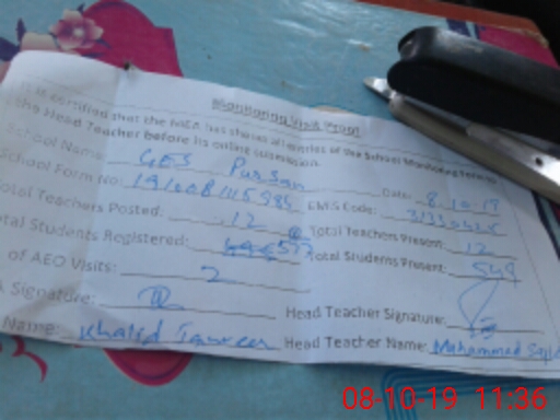 | School Visited by School Health & Nutrition Supervisor (No. of Visits) | 1 | Name1: | Naveed Ul Hassan | Name2: | |