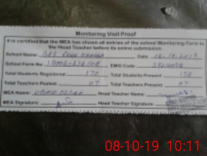 | Attendance Register | Head Teacher | MEA with School | Visit Proof |