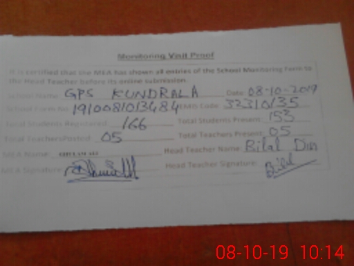 | EMIS Code: 32310135 | Name of School: GPS KUNDRALA | |||