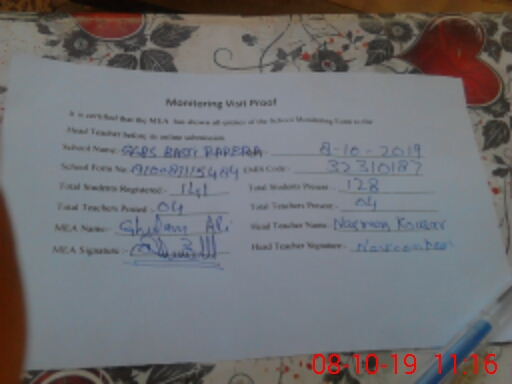 | Certified that this School was Inspected by the Undersigned MEA/DMO Today and the Information Stated Above is as Per Record. | |||||