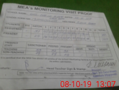 | Certified that this School was Inspected by the Undersigned MEA/DMO Today and the Information Stated Above is as Per Record. | |||||