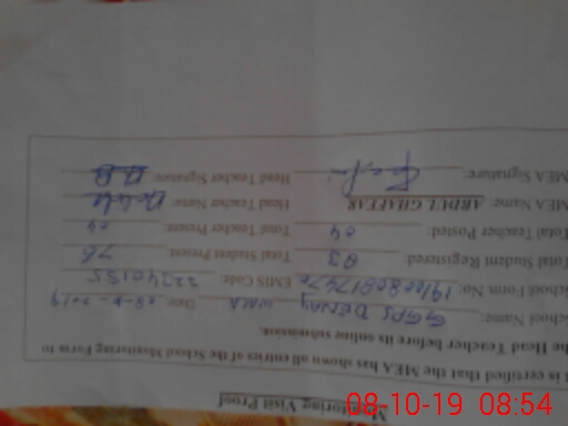 | Name: Ka**** Pe**** Designation: (School Headmaster's/Headmistress's) Pst Phone/Cell Number: 03**** |