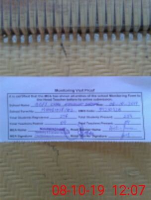 | Attendance Register | Head Teacher | MEA with School | Visit Proof |