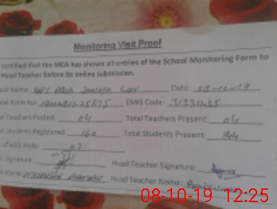 | Certified that this School was Inspected by the Undersigned MEA/DMO Today and the Information Stated Above is as Per Record. | |||||