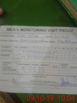 | Attendance Register | Head Teacher | MEA with School | Visit Proof |