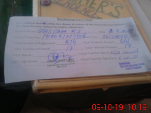 | Attendance Register | Head Teacher | MEA with School | Visit Proof |