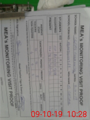 | Monitoring Date: 09-10-2019 | Start Time: 09-10-2019 09:29 AM | End Time: 09-10-2019 10:31 AM | Name of MEA: M.Is**** (S**** 03**** | |
