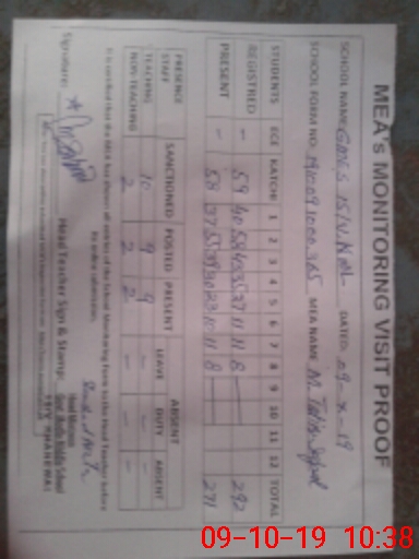 | Monitoring Date: 09-10-2019 | Start Time: 09-10-2019 10:00 AM | End Time: 09-10-2019 10:42 AM | Name of MEA: M.Ta**** Iq**** (S**** | |