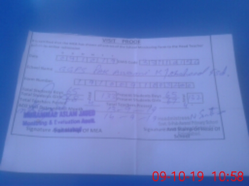 | EMIS Code: 33110156 | Name of School: GGPS PAK AWAMI KALIM SHAHEED COLONY- 2 | |||