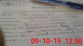 | Monitoring Date: 09-10-2019 | Start Time: 09-10-2019 11:43 AM | End Time: 09-10-2019 12:50 PM | Name of MEA: Ja**** Iq**** | |