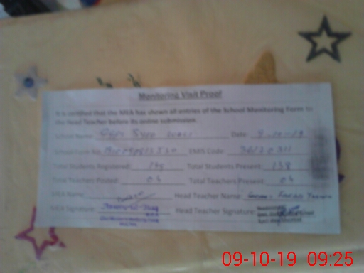 | Attendance Register | Head Teacher | MEA with School | Visit Proof |
