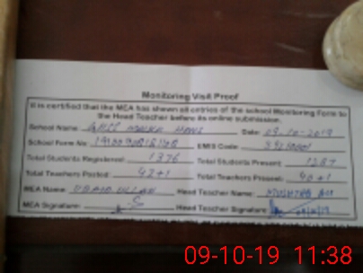| Certified that this School was Inspected by the Undersigned MEA/DMO Today and the Information Stated Above is as Per Record. | |||||