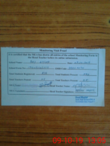 | Attendance Register | Head Teacher | MEA with School | Visit Proof |