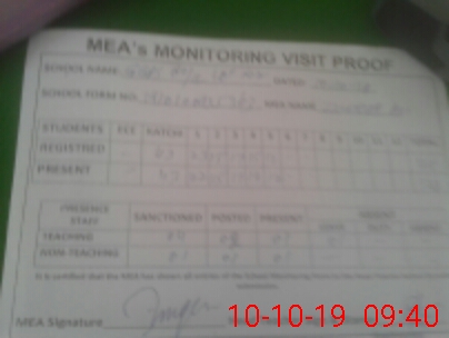 | Attendance Register | Head Teacher | MEA with School | Visit Proof |