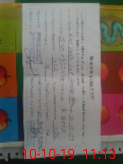 | Remarks (Use Separate Page if Required): In students attendance list class 1 sno 4 5 7 8 10 12 and 14 are replaced name not found in attendance register sno 6 9 and 11 are studying in class 2 last Funds received Rs 99283 01 24 September 2019 | |||||
