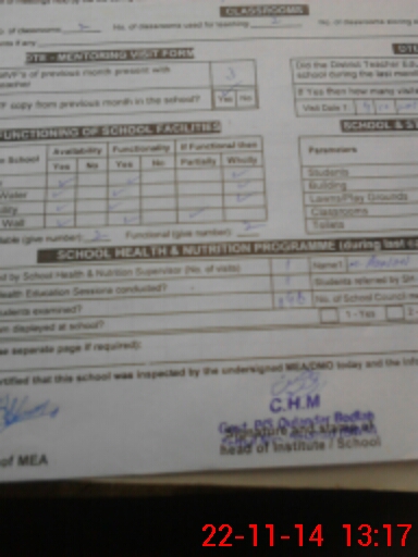 | Attendance Register | Head Teacher | MEA with School | Visit Proof |