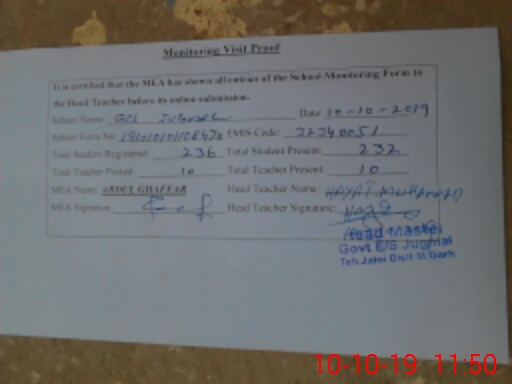 | Certified that this School was Inspected by the Undersigned MEA/DMO Today and the Information Stated Above is as Per Record. | |||||