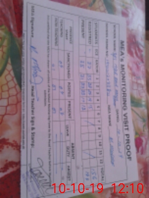 | Attendance Register | Head Teacher | MEA with School | Visit Proof |