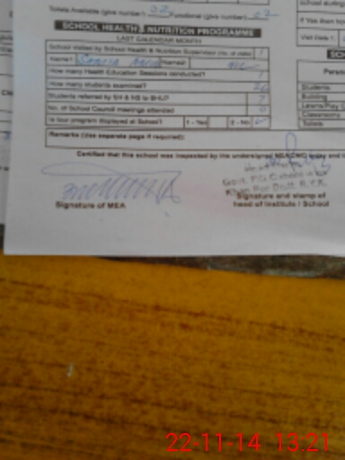 | School Visited by School Health & Nutrition Supervisor (No. of Visits) | 1 | Name1: | Samia Amin | Name2: | Nil |