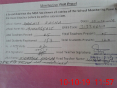 | Attendance Register | Head Teacher | MEA with School | Visit Proof |