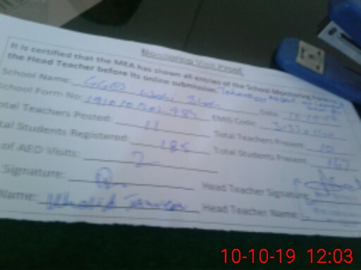 | Certified that this School was Inspected by the Undersigned MEA/DMO Today and the Information Stated Above is as Per Record. | |||||