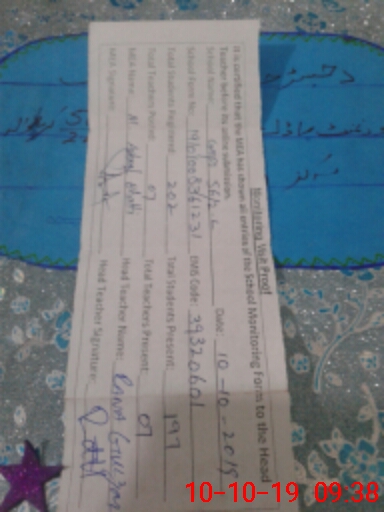 | Certified that this School was Inspected by the Undersigned MEA/DMO Today and the Information Stated Above is as Per Record. | |||||