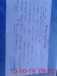 | Monitoring Date: 10-10-2019 | Start Time: 10-10-2019 08:21 AM | End Time: 10-10-2019 09:04 AM | Name of MEA: Za**** Iq**** BN**** | |