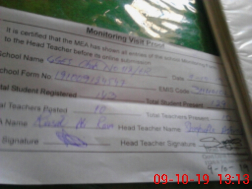 | Certified that this School was Inspected by the Undersigned MEA/DMO Today and the Information Stated Above is as Per Record. | |||||