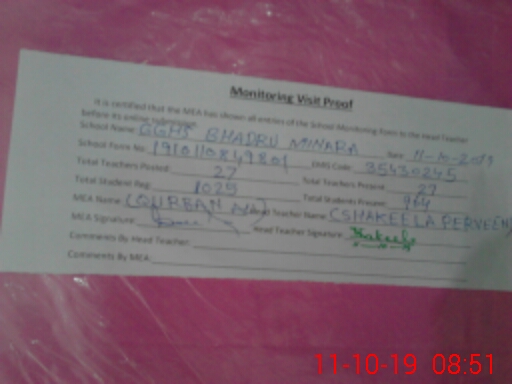 | EMIS Code: 35430245 | Name of School: GGHS BHADRU MINARA | |||