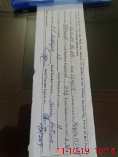 | Monitoring Date: 11-10-2019 | Start Time: 11-10-2019 09:35 AM | End Time: 11-10-2019 10:19 AM | Name of MEA: MU**** SI**** | |