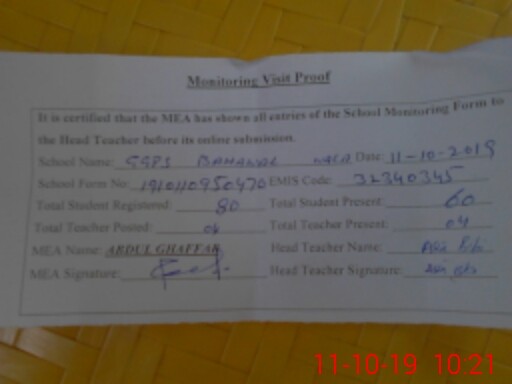| EMIS Code: 32340345 | Name of School: GGPS BAHAWAL WALA | |||