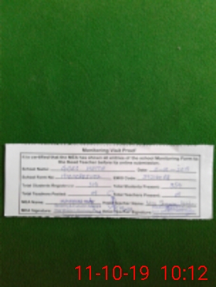 | Monitoring Date: 11-10-2019 | Start Time: 11-10-2019 08:05 AM | End Time: 11-10-2019 10:14 AM | Name of MEA: Mu**** Ha**** (R**** | |