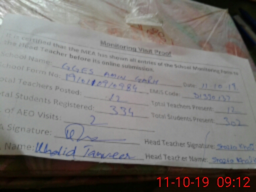 | Certified that this School was Inspected by the Undersigned MEA/DMO Today and the Information Stated Above is as Per Record. | |||||