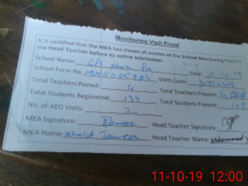 | EMIS Code: 31330419 | Name of School: GPS KHAIR PUR | |||