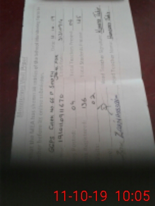 | Monitoring Date: 11-10-2019 | Start Time: 11-10-2019 09:11 AM | End Time: 11-10-2019 10:07 AM | Name of MEA: Za**** Hu**** | |