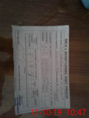 | Monitoring Date: 11-10-2019 | Start Time: 11-10-2019 09:41 AM | End Time: 11-10-2019 10:58 AM | Name of MEA: Ra**** Ha**** | |
