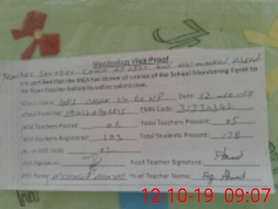 | Certified that this School was Inspected by the Undersigned MEA/DMO Today and the Information Stated Above is as Per Record. | |||||