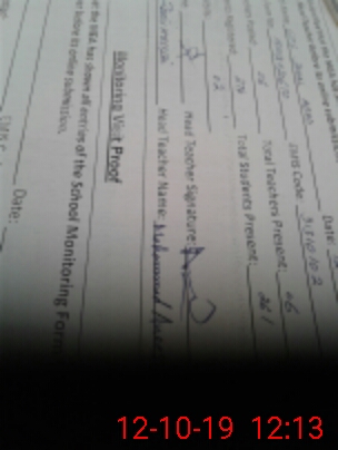 | Attendance Register | Head Teacher | MEA with School | Visit Proof |