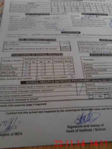 | Certified that this School was Inspected by the Undersigned MEA/DMO Today and the Information Stated Above is as Per Record. | |||||
