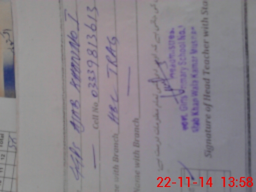 | Name: Ba**** Na**** Designation: (School Headmaster's/Headmistress's) ESE Phone/Cell Number: 03**** |