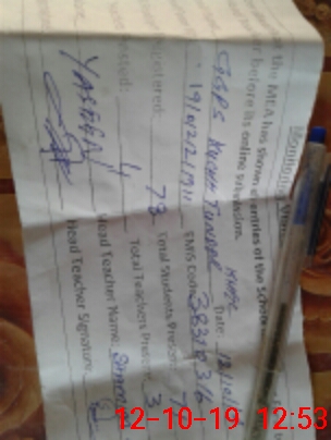 | Attendance Register | Head Teacher | MEA with School | Visit Proof |