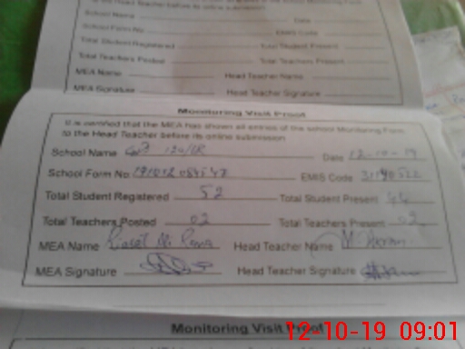 | Attendance Register | Head Teacher | MEA with School | Visit Proof |