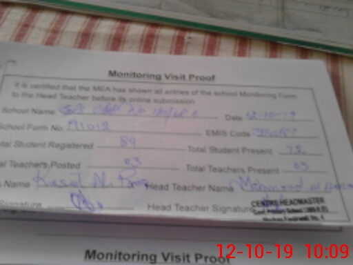 | Attendance Register | Head Teacher | MEA with School | Visit Proof |