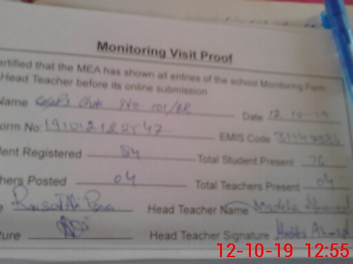 | Certified that this School was Inspected by the Undersigned MEA/DMO Today and the Information Stated Above is as Per Record. | |||||