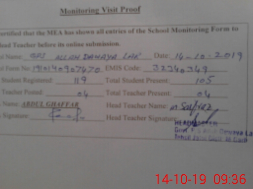 | EMIS Code: 32340349 | Name of School: GPS ALLAH DAWAYA LAR | |||