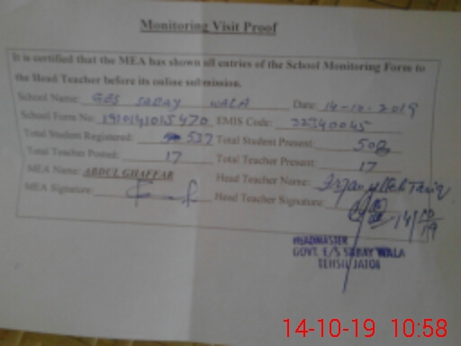 | EMIS Code: 32340045 | Name of School: GHS SABAY WALA | |||