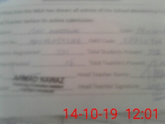 | Certified that this School was Inspected by the Undersigned MEA/DMO Today and the Information Stated Above is as Per Record. | |||||