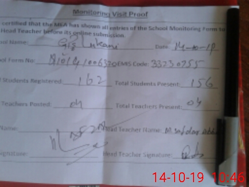 | Certified that this School was Inspected by the Undersigned MEA/DMO Today and the Information Stated Above is as Per Record. | |||||