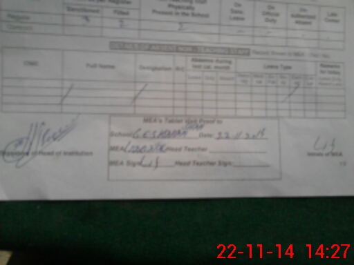 | Attendance Register | Head Teacher | MEA with School | Visit Proof |